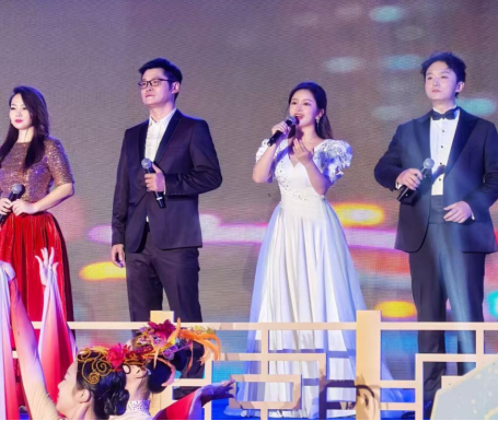 晚会的压轴节目更是精彩纷呈。国际学院辅导员程紫雨与汪荻、汪磊、潘樱等艺术家同台献唱,共同演绎了经典曲目《灯火里的中国》。程紫雨老师的演唱深情而饱满,用歌声描绘出一幅国泰民安、万家灯火的动人画卷,将整场晚会推向高潮。
