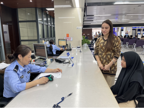 证件办理当天,志愿者们化身“全程向导”,带领新生前往办证大厅。从取号排队、信息采集、材料预审到费用缴纳,志愿者全程陪同,及时解决沟通障碍、材料补正等问题。市公安局出入境管理支队民警程蕾表示:高年级志愿者们充分发挥传帮带作用,对新生适应留学生活有很大的帮助。